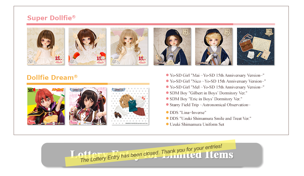 In Japan, we hold 'Dolpa' (Dolls Party) events, and at these events we release special Limited Edition SD (Super Dollfie®) and DD (Dollfie Dream®) models as well as SD and DD related items for our customers who attend.